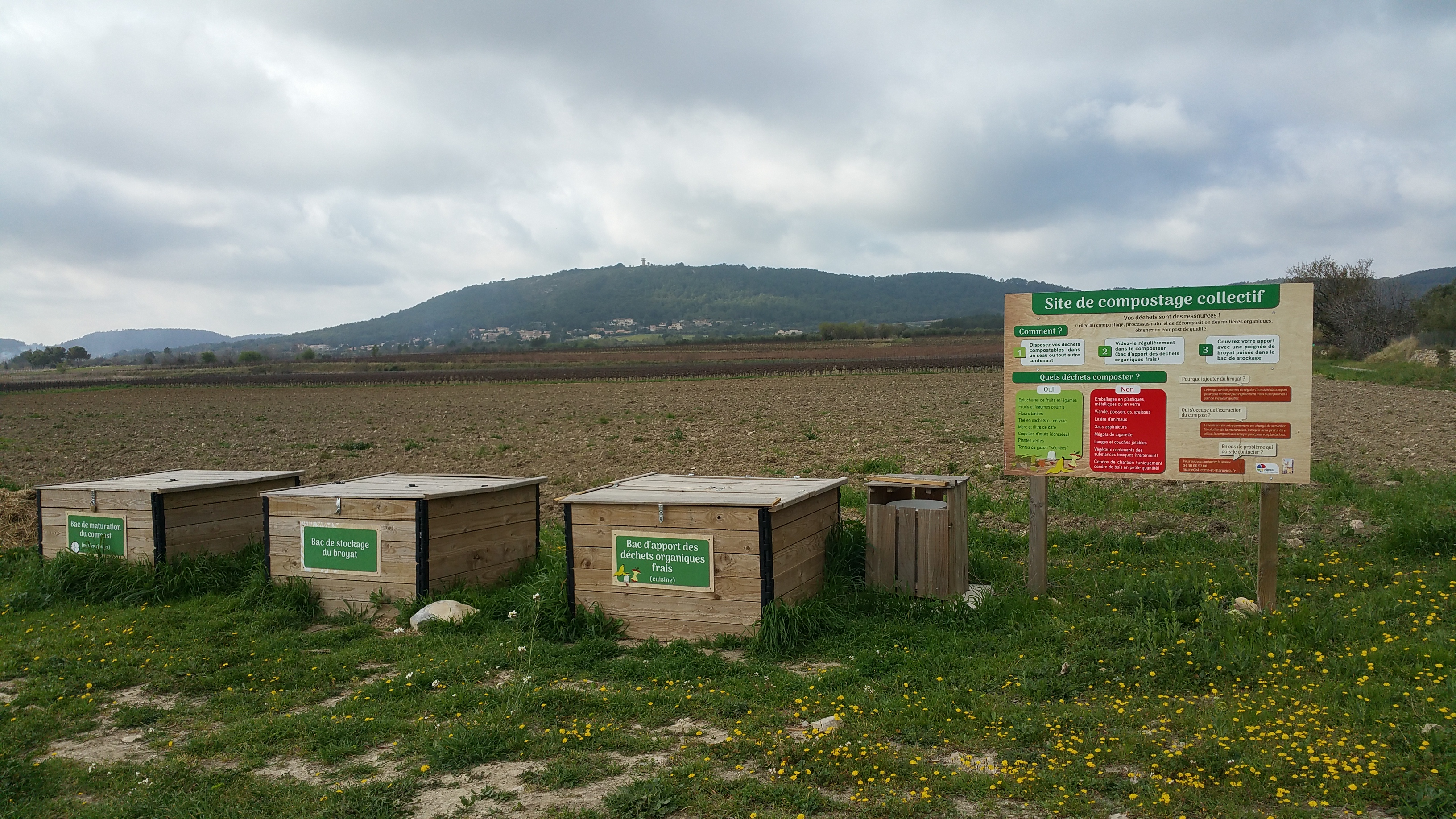 À côté du stade et des jardins partagés, nous avons apprécié les toutes nouvelles installations de la commune : une aire de pique-nique très bien aménagée, son joli auvent de pierres sèches comme une chapelle ouverte sur 2 murs proposant une grande table des bancs king size et des pose-plats bien pratiques. L'originalité est un four à pain dont il faut demander la clef à la mairie ! Sinon il y a à côté un barbecue en dur avec grilles et ustensiles et bien sûr un point d'eau ( mention non potable ) . Autour, des jeux pour enfants et un terrain de boules. Un truc très chouette c'est le dispositif de COMPOSTAGE COLLECTIF, à reproduire partout où ce serait possible ! Beaucoup d'arbres ont été plantés mais l'ombre est rare, à part sous l'auvent. Le gros bémol, c'est l'absence de toilettes publiques. ..gageons que ça ne devrait pas tarder ! Bref, une halte sympathique dans une campagne superbe, aux portes d'un village qui semble tendre vers l'écologie et le développement durable.